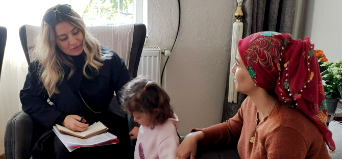 Kınık Belediyesi iş birliği ile ilçeye yerleşen depremzede ailelere ücretsiz psikolojik danışmanlık hizmeti veren Psikolog Buket Mert, vatandaşların yaşadıkları travmayı en aza indirebilmek amacıyla yüz yüze görüşmeler gerçekleştiriyor. Psikolog Buket Mert depremde zarar gören vatandaşları, Kınık Belediyesi Halkla İlişkiler Birimi çalışanları ile birlikte evlerinde ziyaret ediyor. Ayrıca depremzedeler 0 232 687 10 12 numaralı telefonuBağlantı mesai saatleri içerisinde arayarak randevu oluşturabiliyorlar.