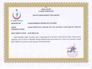 Adnan Menderes Üniversitesi (ADÜ) Uygulama ve Araştırma Hastanesi bünyesinde yeni oluşturulan 23 yatak kapasiteli Palyatif Bakım Merkezi'nin faaliyete geçmesi için gerekli olan "Geçici Ruhsat Belgesi" Sağlık Bakanlığı tarafından onaylandı ve "Tescil Belgesi" Aydın İl Sağlık Müdürlüğü tarafından düzenlendi.