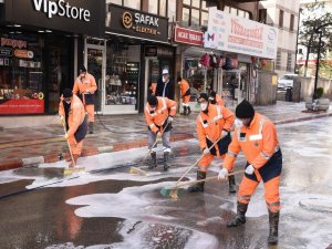 Korona virüs salgını ile mücadelede çalışmalarını sürdüren belediye, özellikle cadde ve sokaklarda dezenfekte ve hijyene ayrı bir önem veriyor. Belediye Temizlik İşleri Müdürlüğünde görevli 27 personel 2. Dumlupınar caddesinde yolları ve kaldırımları köpüklü suyla yıkadı. Cadde üzerinde bulunan iş yeri sahipleri ve vatandaşlar belediyeye yaptıkları dezenfekte çalışmalarından dolayı teşekkür etti.