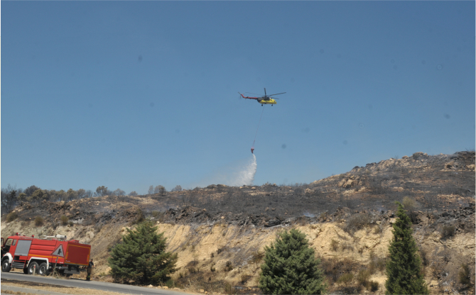 İzmir'in Aliağa ilçesine bağlı Çaltılıdere Mahallesi Pınarcık mevkiinde çıkan orman yangını, havadan ve karadan yapılan yoğun müdahaleyle söndürüldü. Alia Park, Atla Terapi ve Rehabilitasyon Merkezi'nin üst kısmında başlayan yangın, makilik alanın ve ormanlık arazinin bir bölümünde hasara yol açtı.