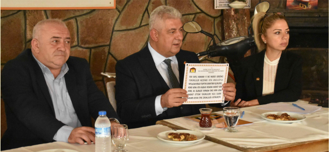 Sahil bandında bir kafede yoğun katılımıyla gerçekleştirilen toplantıya İzmir Emlak Komisyoncuları Odası Başkanı Mesut Güleroğlu, Aliağa Esnaf Ve Sanatkarlar Odası Başkanı Serdar Berk ile Aliağa ’da emlakçılık yapan esnaflar katıldı.