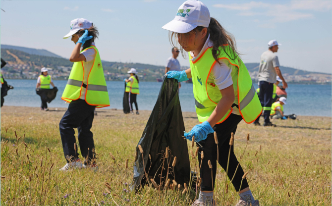 İzmir Valiliği Çevre, Şehircilik ve İklim Değişikliği İl Müdürlüğü’nün organizasyonuyla, Aliağa Belediyesi’nin ev sahipliğinde gerçekleşen kıyı temizliği etkinliği, Aliağa İlçe Milli Eğitim Müdürlüğü koordinesinde Aliağa TOKİ İlkokulu öğrencilerinin katılımıyla yapıldı. Aliağa Belediyesi İklim Değişikliği ve Sıfır Atık Müdürlüğü, Temizlik İşleri Müdürlüğü ve Ulaşım Hizmetleri Müdürlüğü de etkinliğe destek verdi.
