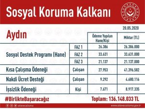 Aile, Çalışma ve Sosyal Hizmetler Bakanlığı tarafından korona virüs salgın süresince hayata geçirilen Sosyal Kuruma Kalkanı kapsamında Aydın'da yapılan sosyal yardımlar hakkında bilgi veren Metin Yavuz, "Korona virüs salgını sürecinde vatandaşlarımızın mağdur olmamaları için Aydın ilimiz gelenin dar gelirli 81 bin 154 vatandaşımıza biner lira nakit desteği sağladık. Kısa Çalışma Ödeneği olarak 27 bin 953 çalışana 41 milyon 396 bin 582 TL, Nakit Ücret Desteği olarak 9 bin 292 çalışana 4 milyon 680 bin 116 TL ve İşsizlik Ödeneği olarak 7 bin 671 kişiye 8 milyon 917 bin 335 TL nakit destek olmak üzere 58 milyon 994 bin 33 TL kaynak aktardık. Cumhurbaşkanımız Recep Tayyip Erdoğan'ın talimatıyla hayata geçirilen Sosyal Koruma Kalkanı ile son 2 ayda 126 bin 70 vatandaşımıza 136 milyon 148 bin 033 TL nakit desteği sağlamış olduk. Cumhurbaşkanımıza ve emeği geçenlere, zor günlerde sağlanan bu destek için sonsuz teşekkür ediyoruz" dedi.