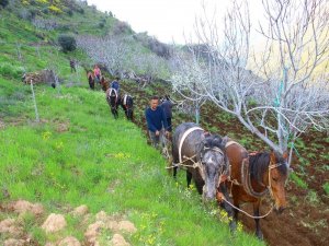 Engebeli olması nedeniyle asırlar öncesinde olduğu gibi arazileri atlarla işlemek zorunda olan çiftçiler, zor olsa da çalışmak zorunda olduklarını belirterek, bu dönemde insanlık için üretim yaptıklarını söylediler.