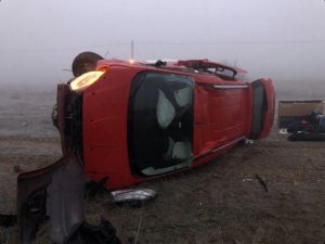 Aydın'ın Kuşadası ilçesinde yaşayan A.K. yönetimindeki 09 K 0926 plakalı otomobil Kütahya'nın Gediz ilçesinde yolun aşırı sisli olmasından dolayı virajı alamayarak takla attı. Tarlaya uçan otomobil hurdaya dönerken kazada ölen ya da yaralanan olmadı.