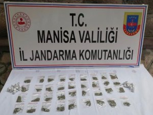 Manisa İl Jandarma Komutanlığı ekipleri, yaptıkları istihbarat çalışması sonrası Şehzadeler ilçesine bağlı Aşağıçobanisa Mahallesi Doğanca Tımarı mevkiinde M.V.'ye (48) ait bağ evinde narkotik köpeği ile arama yaptı. Aramalarda Ege bölgesine ve komşu illere dağıtımı yapılmak üzere hazırlanan 185 adet poşet içerisinde toplam 750 gram esrar maddesi su boruları ve toprağa gömülü şekilde ele geçirildi. Şüpheli M.V. jandarma tarafından gözaltına alındı.