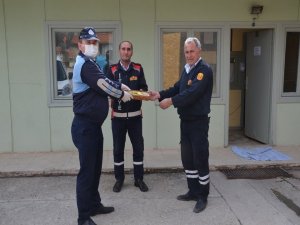 Kütahya'nın Emet ilçesinde, Korona virüs Covid-19 ile mücadele kapsamında sahada etkin mücadele veren kamu görevlileri ve sivil toplum örgütlerine moral ve motivasyon için baklava ikramı yapıldı.