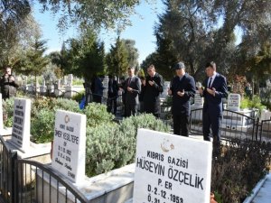 İlk olarak, Nazilli Kaymakamı Sedat Sırrı Arısoy, Cumhuriyet Başsavcısı Mehmet Akif Dönertaş ve İlçe Emniyet Müdürü Korhan Özmenlikan ile Nazilli Eğriboyun Mezarlığı'nda bulunan şehitliği ziyaret eden Başkan Özcan, "Şehadet yemini etmiş ecdadımızı rahmet, minnet ve saygı ile anıyorum" dedi.