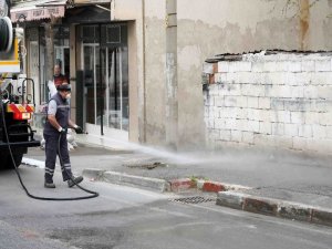 Vatandaşların toplu halde bulunduğu mekanların kapatılması üzerine, temizlik çalışmalarını açık alanlarda yoğunlaştıran ekipler, ana arterlerin yanı sıra sokak ve kaldırımları da dezenfektanlı sularla yıkadı. Temizlik İşleri Müdürlüğü ekipleri, çalışmalar kapsamında çöp konteynerlerinin yanı sıra ilçedeki tüm otobüs, minibüs ve taksi duraklarını da dezenfektanlarla temizledi.