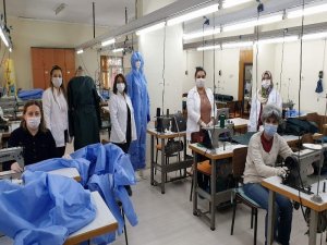 Cerrahi tulum, cerrahi önlük ve maske dikimi yaptıklarını ifade eden Usta Öğretici Ayşen Tutar; "Ön çalışmasını yaptıktan sonra dün öğleden sonra dikim işlerine başladık. Günde 15-20 tane dikim planlıyoruz. Şu an çok iyi gidiyor. Eğer sokağa çıkma yasağı olursa kesimlerimizi artırıp evlere yöneleceğiz" dedi.