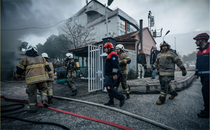 İzmir’in Bornova ilçesi Kemalpaşa Caddesi’nde ayakkabı üretimi yapılan 5 katlı bir fabrikada sabah saat 07.50 sıralarında yangın çıktı. Yükselen dumanları fark eden çalışanlar, durumu 112 Acil Çağrı Merkezi’ne bildirdi. İhbar üzerine İzmir Büyükşehir Belediyesi İtfaiye Dairesi Başkanlığı ekipleri 8 araç ve çok sayıda personelle kısa sürede olay yerine sevk edildi. Ekipler gelene kadar fabrikada bulunan çalışanların büyük bölümü binayı güvenli şekilde tahliye etti. Olay yerine ulaşan itfaiye ekipleri, yangına müdahale ederken üst katlarda bulunan birkaç kişinin de güvenli şekilde aşağı indirilmesini sağladı. Fabrikanın zemin katında çıktığı belirlenen yangın, ekiplerin hızlı ve koordineli müdahalesi sayesinde diğer katlara sıçramadan yaklaşık 45 dakika içerisinde kontrol altına alındı. Yangının mesai saati öncesinde meydana gelmesi ve içerideki personel sayısının az olması yaşanabilecek can kaybı ya da yaralanmayı önledi. Ayrıca ekiplerin zamanında müdahalesi sayesinde alevlerin çevredeki diğer tesislere sıçraması da engellendi.