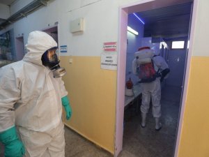 İzmir'in Buca ilçesinde belediye ekipleri, okullarda mikroplar ve olası hastalıklara karşı ilaçlama yaptı.