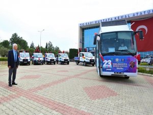 Başkan Gürün, ses araçlarını ilçelere uğurladı