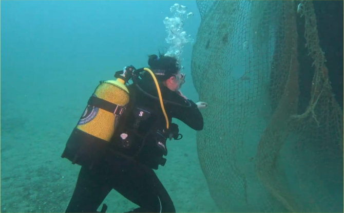 Bu temizlik çalışması kapsamında deniz dibinden yaklaşık 1,5 ton terk edilmiş balık ağı çıkarıldı.