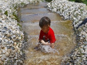 Denizli Büyükşehir Belediyesi ekiplerinin kent merkezindeki İncilipınar Parkı'nda bulunan gölette müzik eşliğinde su gösterisi yapması çocuklar ve aileler tarafından büyük beğeni topladı.