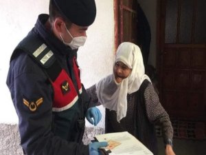Kütahya'nın Emet Jandarma Komutanlığı Asayiş Devriyesi ekipleri, ihtiyaç sahiplerine verilen bin liralık sosyal yardım paralarını, kapı kapı dolaşarak köylerde dağıttı.