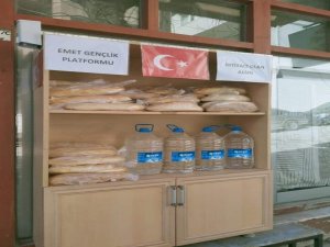 Kütahya'nın Emet ilçesinde, Belediye dükkanları karşısında Emet Gençlik Paltformu üyeleri tarafından Korona virüs (Covid-19) salgını nedeniyle "İmkanı olan koysun, ihtiyacı olan alsın" kampanyası başlatıldı.