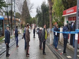 Korona virüs (Covid-19) tedbirleri kapsamında Gördes'te banka ve ATM'lerde 1 metre kuralı göz önünde bulundurularak, şeritler çizildi.