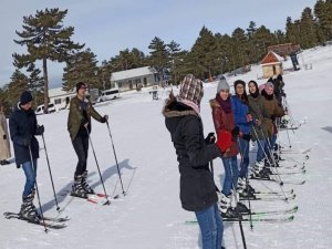 Kütahya'nın Emet ilçesinde kız öğrenciler, Emet Kaymakamlığının düzenlediği etkinlikle Murat Dağı Termal Kayak Merkezi'nde bir araya geldi. Murat Dağı'nın ormanları arasındaki kayak merkezinin eşsiz manzarası eşliğinde keyifli dakikalar geçiren öğrenciler, daha sonra kayak antrenörü eşliğinde kayak yapmayı kısa sürede öğrenip kayak yaptı. Emet Kaymakamı Hasan Çiçek'in Eşi Songül Çiçek ve Öğretmenleri Yasin Peker ile birlikte kayak yapan öğrenciler, gün boyunca keyifli dakikalar geçirdi.