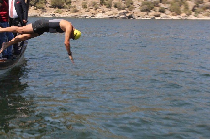 Milli sporcu Kemal Özdemir, tek koluyla Bafa Gölü'nde de "temiz su kaynakları mücadelesi için" kulaç attı.
