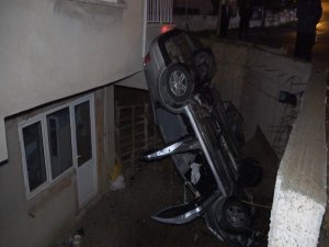 Denizli'de kontrolden çıkan otomobil bir evin bahçesine düştü. Evin duvarına çarpan otomobilin sürücüsü yaralandı.