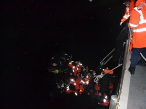 İzmir'in Çeşme ilçesi açıklarında Yunan unsurları tarafından geri itilen lastik botta bulunan 12'si çocuk 21 düzensiz göçmen Sahil Güvenlik ekipleri tarafından kurtarıldı.