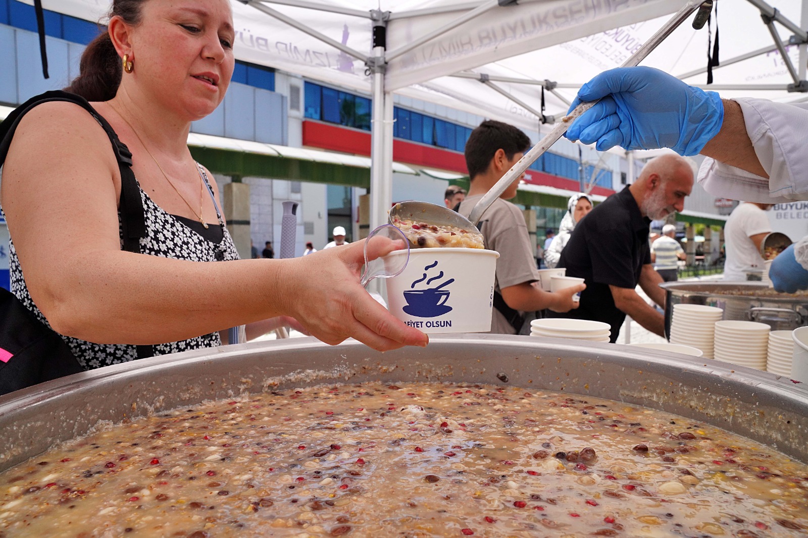 İzmir Büyükşehir Belediyesi tarafından Muharrem ayı nedeniyle kentin üç noktasında 5 bin kişilik aşure dağıtıldı. Cemevlerine ise aşurelik malzeme ulaştırıldı.