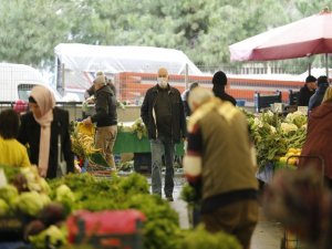 Pazar yerinde eldiven kullanılması yönünde anons yapıldı