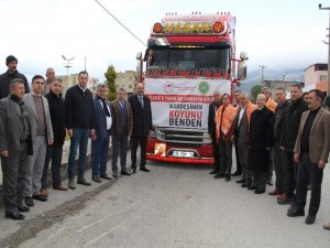 Konuşmalarından ardından tıra yüklenen koyunlar için dua edildi. Duanın ardından tır, Elazığ'a doğru yola çıkmak üzere uğurlandı.