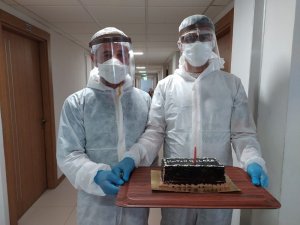 Doğum günü pastasını görmesiyle adeta mutluluktan uçan minik Alparslan ise, "Çok mutluyum. Kendimi iyi hissediyorum" dedi. 6 yaşında karantinada doğum günü kutlanan Alparslan ise kendisine pasta getiren görevlilere çikolata hediye etti.