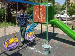 Konak Belediyesi, yaklaşık 2 aydır sokağa çıkamayan ve 13 Mayıs'ta ilk kez dışarı çıkacak olan çocuklar için parkları ve oyun alanlarını tertemiz korona virüs tedbirleri dahilinde dezenfekte ediyor.