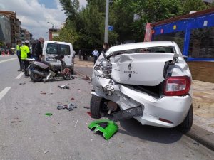 Denizli'de kontrolden çıkan otobüs, park halindeki 2 otomobil ve motosiklete çarptı. Kazanın etkisiyle savrulan otomobillerden biri çaptığı kaldırımdaki ağacı yıkarak durabildi.