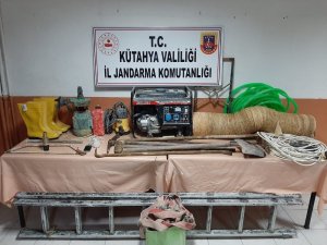 İl Jandarma Komutanlığı ekipleri, Tavşanlı ilçesi Göbel Köyünde bulunan arazide izinsiz kazı yapıldığı, şüpheli şahısların gece vakti jeneratör yardımıyla çalıştıkları bilgisi üzerine çalışma başlattı. Tavşanlı ilçe Jandarma Komutanlığı ekipleri ile birlikte yapılan müşterek çalışma neticesinde, bahse konu mevkide F.A., R.D., İ.D. ve F.K. isimli şüpheliler izinsiz kazı yaptıkları esnada suç üstü yakalandı.