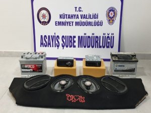 Kütahya'da park halindeki iki araçtan teyp, hoparlör ve akü çalan 2 kişi polis ekiplerince yakalandı.