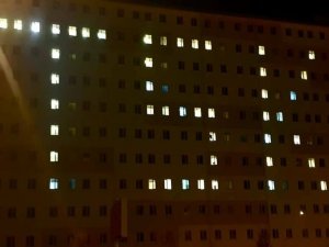 Afyonkarahisar'da Kredi ve Yurtlar Kurumu (KYK) bünyesinde faaliyet gösteren yurtlarda Mehmetçiğe destek amacıyla dün akşam yurdun ışıkları ile TSK yazılarak, Türk bayrağı açılıp İstiklal Marşı okundu.