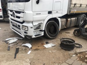 Muğla'nın Fethiye ilçesinde kamyona takılan lastiğin patlaması sonucunda 2 kişi yaralandı.