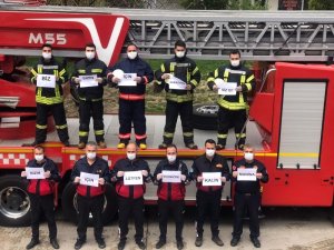 Manisa Büyükşehir Belediyesi İtfaiye Dairesi Başkanlığı personeli tüm dünyayı etkisi altına alan korona virüs tehditine karşı itfaiye araçları üzerinde ellerinde tuttukları mesaj içerikli kağıtlarla çağrıda bulundu. Her bir kelimeyi bir itfaiyecinin tuttuğu "Biz sizin için buradayız siz de bizim için lütfen evinizde kalın Manisa" yazısıyla Manisalılara evlerinden çıkmama çağrısında bulunan itfaiye personeli görevlerinin başında olduğunu belirtti.