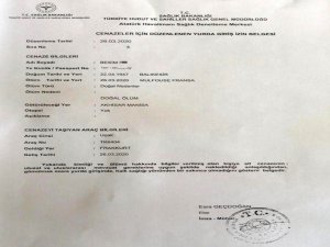 Akhisar'a bağlı Eroğlu köyünde ikamet eden ve yaklaşık 3 ay önce kanser tedavisi amacıyla Fransa'da yaşayan çocuklarının yanına gittiği tespit edilen Besim B.'nin, "Cenaze Nakil Belgesi'nde de belirtildiği üzere doğal sebeplerle vefat ettiği ve herhangi bir bulaşıcı hastalığının olmadığı açıklandı.