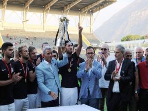 Spor Toto 2. Lig Kırmızı Grup'ta şampiyon olarak TFF 1. Lig'e yükselen Manisaspor, ligin ilk haftasında Elazığspor ile oynayacağı maçın hemen öncesinde şampiyonluk kupasını aldı.