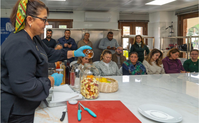 Yemeklerde, salatalarda tatlandırıcı olarak veya salamura gibi koruyucu olarak kullanılan sirkenin tarihi yaklaşık 10 bin yıl öncesine dayanıyor. Antibakteriyel özelliği, antioksidan aktivitesi, kan basıncını düşürmesi, anti-diyabetik ve ağırlık kontrolüne olan etkisi ile sağlığa birçok olumlu etkisi bulunan sirke, farklı çeşitlerde yapılabiliyor. İzmir Büyükşehir Belediyesi Meslek Fabrikası Özdere Kurs Merkezi, sirkenin yapımı için özel bir atölye düzenledi. 15 katılımcıyla yapılan atölyede, Gümöz Kadın Kooperatifi ve Turuncu Eller Tarımsal Kalkınma Kooperatifi’nde yer alan Sevilay Feyizoğlu tarafından kapsamlı bir eğitim verildi. Elma, limon, portakal, zencefil ve ayva ile sirke yapımını öğreten Feyizoğlu, sirkenin faydalarını da aktardı.