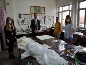 Milas Halk Eğitim Merkezi'nde gönüllü kursiyerlerce maske üretimine başlanıldı. Çalışma yapan personelleri ziyaret eden Milas İlçe Milli Eğitim Müdür Vekili Türker Yurtsever, yaklaşık bin adet maske üretileceğini belirterek, "9'u gönüllü kursiyerlerimiz ve 3'ü usta öğretici olmak üzere toplam 12 kişilik bir ekip çalışma yapıyor. Usta öğreticilerimiz maskelerin kalıp çalışmalarını yaptıktan sonra kursiyerlerimiz bu maskeleri evlerinde üretecek. Daha sonra bu maskeler paketlenerek Milas Kaymakamlığı'na teslim edilecek. Ürettiğimiz maskeler tıbbi malzeme özelliği taşımıyor. Yıkanılarak temizliği yapılabilecek malzemelerden yapılıyor" dedi.