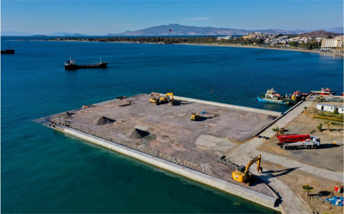2025 yılı mayıs ayına kadar tamamlanması hedeflenen projede dolgu imalatları tamamlandı. Bugüne kadar 42 bin ton dolgu imalatı yapılırken su içi uygulamaları için 3 bin 500 metreküp beton dökümü gerçekleştirildi. Kronman beton dökümü devam eden projede bina imalatına da yakın bir zamanda başlanacak.