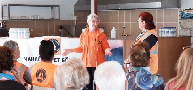Foça Mahalle Afet Gönüllüleri Koordinatörü Canan Limnili “Yaklaşık bir yıl önce mahalle afet gönüllüleri ekibimizi kurduk, şu an için 34 üyemiz mevcut fakat yaşadığımız şu son afetten sonra aramıza katılımlar çok fazla oldu. Biz hep şunu dile getiriyoruz ne kadar eğitim o kadar bilinçlenme ve o kadar dirençli toplumlar demektir. Bütün Foça halkını aramıza katılmaya davet ediyorum” dedi