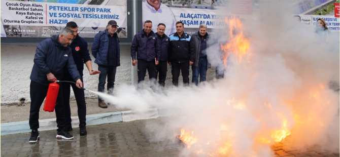 İzmir Büyükşehir Belediyesi İtfaiye Eğitim Şube Müdürlüğü tarafından Çeşme Belediyesi Zabıta Müdürlüğü personeline toplumda afet bilinci oluşturmak amacıyla yangın güvenlik eğitimi verildi.