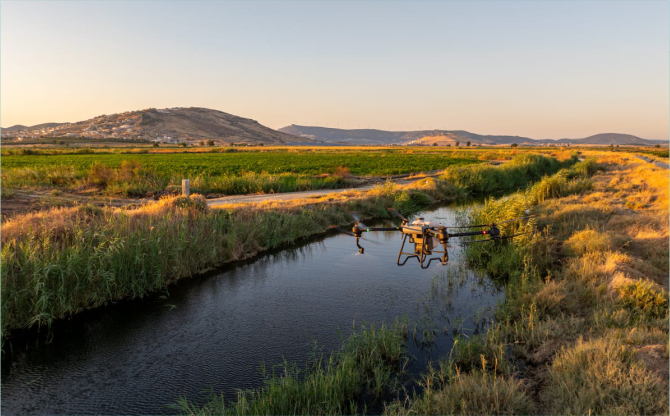 İzmir Büyükşehir Belediyesi Çevre Koruma ve Kontrol Dairesi Başkanlığı Vektör Mücadele Birimi, 30 ilçede 12 ay boyunca sinek ve haşereye karşı üreme alanlarında çalışmalarını aralıksız sürdürüyor. Küresel iklim krizi ve değişen yağış rejimi nedeniyle artan sivrisinek popülasyonuna karşı yoğun bir mücadele veren ekipler yaklaşık 300 bin noktada ilaçlama yapıyor. Sivrisinekle mücadelede en etkili ve hızlı sonucu almak için insan ve makine gücünün ulaşamadığı bölgelerde günün teknolojisi ile desteklenen ilaçlama yöntemleri kullanılıyor. Sivrisineklerin en çok ürediği ve rüzgarın da etkisiyle kent merkezine taşındığı bölgelerden biri olan Gediz Deltası’nın Foça Bağarası ile birleştiği bölüm ile Küçük Menderes Havzası’nda bulunan Selçuk Pamucak’ın bir bölümünde zirai dron aracı ile biyolojik larvasitler kullanılarak ilaçlama yapılıyor. Kapasitesi 40 litre olan ve saatte 213 dekar ilaçlama yapabilen dron ekiplere büyük kolaylık sağlıyor.