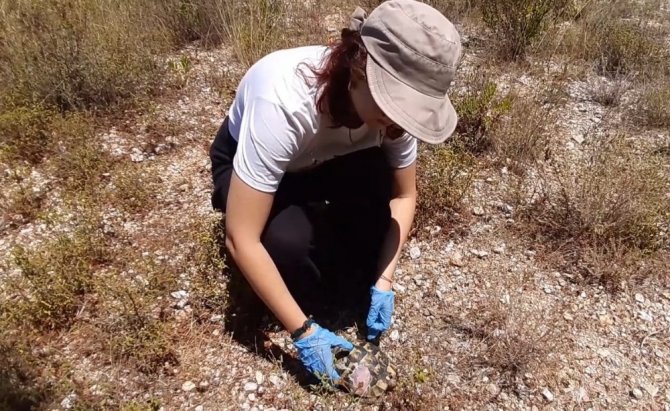 Kuşadası Kadınlar Denizi'nde oturan Tülin Evre isimli vatandaş, yaklaşık 1 ay önce, yol kenarında kabuğunun üst kısmı parçalanmış bir kara kaplumbağası bularak Ekosistemi Koruma ve Doğa Sevenler Derneği'ne (EKODOSD) haber verdi. Kabuğu parçalanmış kaplumbağa gönüllü veteriner Nevzat Yıldızlı'ya tedavisinin yapılması için teslim edildi. Kaplumbağa'nın kabuğun parçalanan yerleri özel bir maddeyle yapıştırılarak, gerekli tedavisini yaptırıldı.