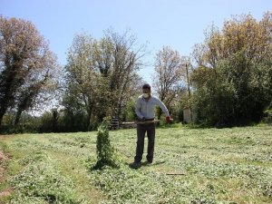 Tarımsal üretim yapan ve geçimini çiftçilikle sağladığını belirten 72 yaşındaki Necmettin Çelebi ve 72 yaşındaki eşi Sevim Çelebi, hayvanlarını doyurmak için tarlalarındaki otları biçmeye devam ediyor.
