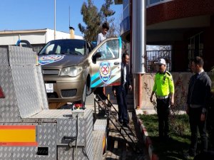 Manisa'nın Alaşehir ilçesinde, 9'uncu sınıf öğrencilerine, simülasyon aracı ile emniyet kemeri takmanın önemi uygulamalı olarak anlatıldı.