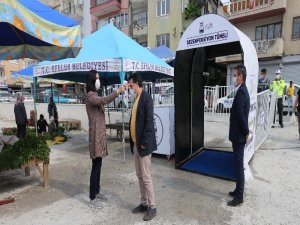 Korona virüsün ülkemizde görüldüğü ilk günden bu yana başta dezenfeksiyon işlemleri olmak üzere birçok çalışmaya imza atan Efeler Belediyesi, özellikle halkın yoğun olduğu semt pazarlarında önlemler alıyor. Tek bir noktadan dezenfeksiyon tünelinden geçilerek girilen pazar yerlerinde örnek bir çalışmaya imza atıldı. Efekent, Fatih, Eski Otogar ve Nevzat Biçer Parkı yanında kurulan yeni pazar yerinde girişlerde ateş ölçümü yapıldı, satış yapan esnaflara ve vatandaşlara maske dağıtımı gerçekleştirildi. Bu sayede Efelerli vatandaşların alışverişlerini daha güvenli bir şekilde yapmaları sağlandı. Pazar yerlerinde maske dağıtımının rutin olarak devam edeceği bildirildi.