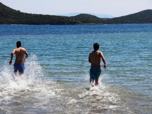 Bodrum'da sokağa çıkma kısıtlamasının ardından sahiller ve sokaklar boş kaldı. Kumbahçe, Paşatarlası, Gümbet sahilleri sessizliğini korudu. Bitez sahilinde ise 2 gencin denize girdiği görüldü. Sıcak havadan bunalıp denize giren gençler boş sahilin tadını doyasıya çıkardı. Hava sıcaklığının 28 dereceye kadar çıktığı Bodrum'da mavi sulara kendilerini bırakan gençler yüzme yarışı yapmayı da ihmal etmedi.